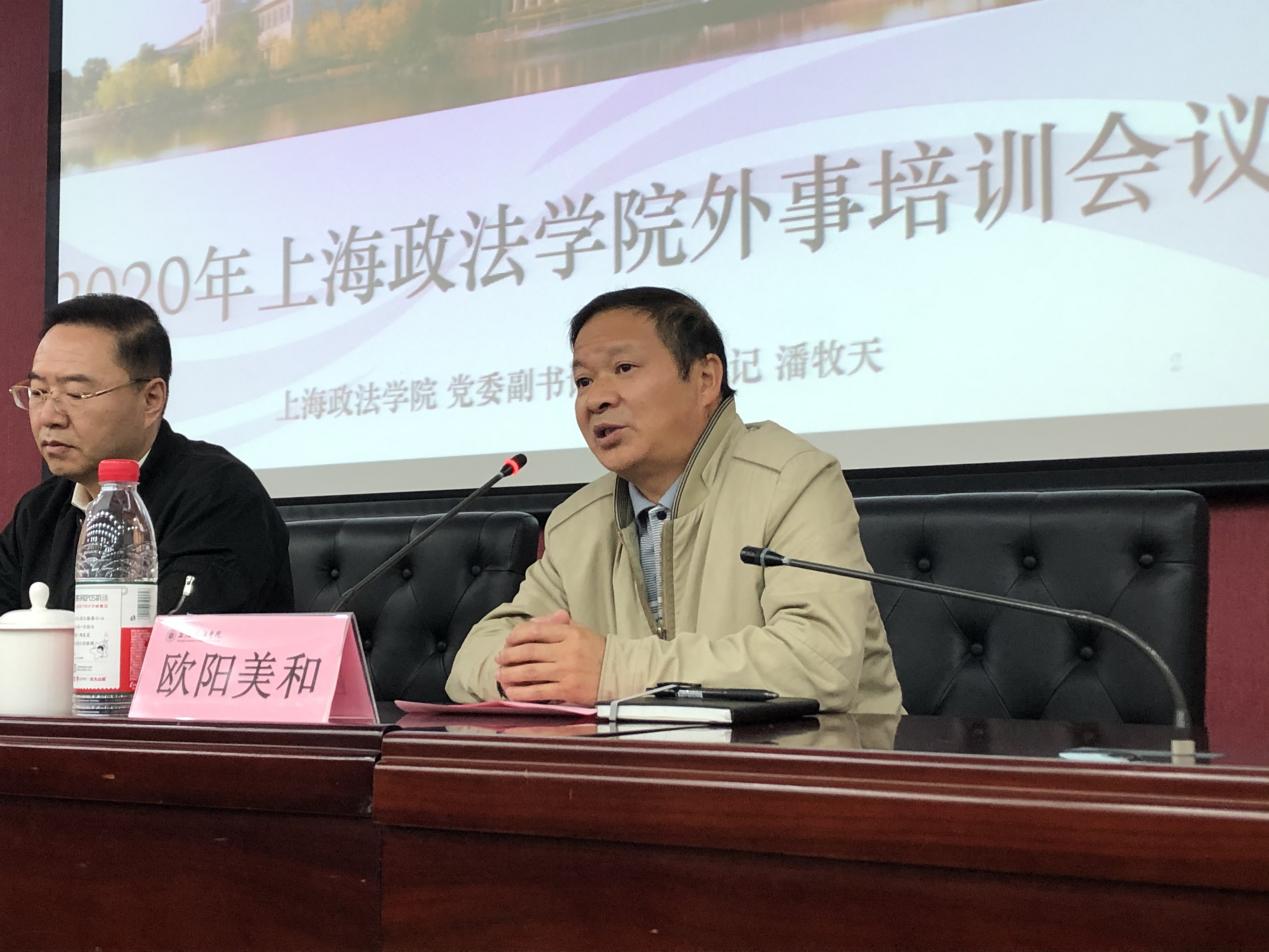 潘牧天代表我校对市外办相关部门领导和专家的莅临指导表示热烈欢迎,并简要介绍了我校国际化工作的情况。他指出,我校正在加快落实中央赋予的战略任务,力争将中国-上合基地这一国家级平台打造成上海合作组织安全、反恐、司法合作等方面官员培训、决策咨询、人才培养的高端平台。国际化人才培养一直是我校的重点工作之一。我校致力于扩大来华留学生规模,多层次发展来华留学生教育,希望通过本次外事培训会议进一步合规、优质推进国际化办学。
