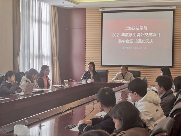 11月23日下午,2021年度学生赴境外交流项目奖学金颁发仪式于综合研究中心101会议室举行。国际交流处处长(港澳台办公室主任)欧阳美和、国际交流处副处长(港澳台办公室副主任)张正怡出席会议。会议由国际交流处(港澳台办公室)学生项目主管刘灵主持。