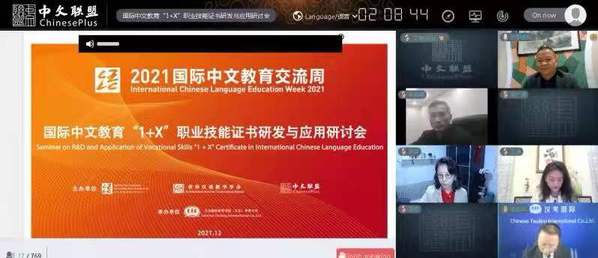 为推动国际中文教育高质量发展,更好服务世界各国中文学习者,促进中外语言交流合作,12月13日,中外语言交流合作中心与关注国际中文教育的众多伙伴一同发起的2021年“国际中文教育交流周”正式开启。我校国际交流处处长、国际交流学院院长欧阳美和、上合组织法律服务委员会研究咨询中心副主任岳强、国际交流处国际合作交流项目主管王瑶参加了由汉考国际举办的国际中文教育“1+X”职业技能证书研发与应用线上研讨会。欧阳美和受邀在“中文+职业技能”1+X 证书海外应用与生态模式版块作主旨发言。