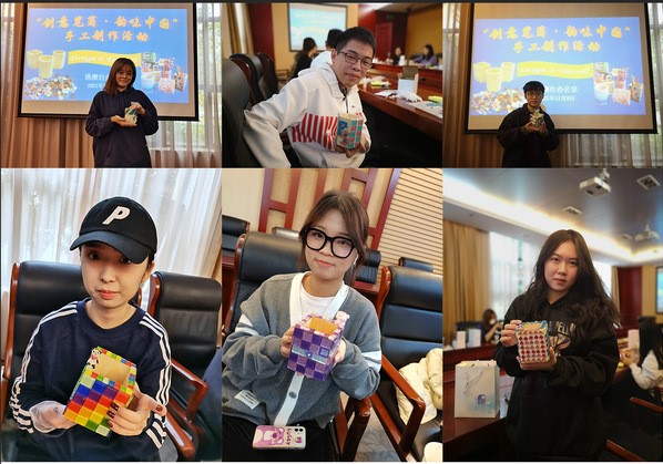 11月9日下午,“创意笔筒•韵味中国”手工制作活动在综合研究中心101室举办。港澳台办公室主任欧阳美和、副主任张正怡、港澳台办相关工作人员、我校港澳台侨学生及部分大使团成员参加活动。活动由港澳台办公室副主任张正怡主持。
