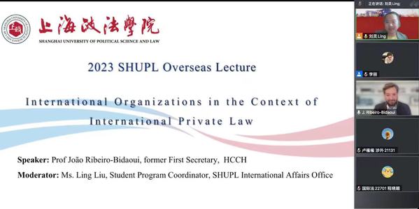 4月20日下午,我校2023年春季“海外讲坛”系列讲座第一讲顺利举办。本次讲座以“国际私法研究视域下的国际组织”为主题,由海牙国际私法协会前第一秘书长João Ribeiro-Bidaoui教授主讲。讲座由国际交流处学生项目主管刘灵主持,我校百余位学生在线聆听。