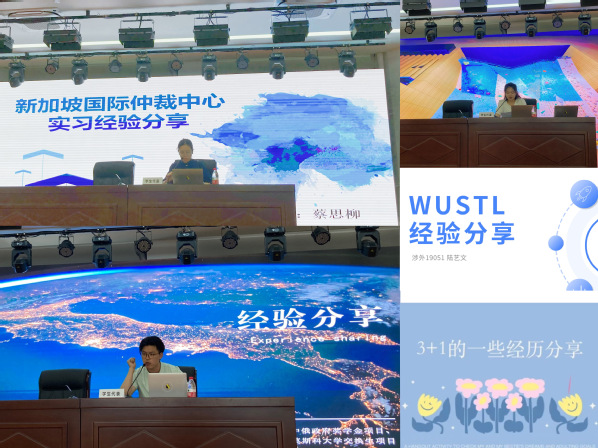 新加坡国际仲裁中心实习项目代表蔡思柳介绍了参与国际组织实习工作的心得体会与感想。中俄政府奖学金项目、2022年莫斯科大学交换生项目代表韩廷伟结合赴俄留学经历,畅谈自身的学习生活与收获。澳门大学交换生项目代表肖明炜分享了自己在不同文化的碰撞中实现自我成长的经历。利兹大学硕士项目代表张泽源、圣路易斯华盛顿硕士项目代表陆艺文仍在海外交流学习,在线与同学们分享了海外学习的所见所闻、所感所想,鼓励同学们明确目标、提前规划,抓住机会,实现梦想。