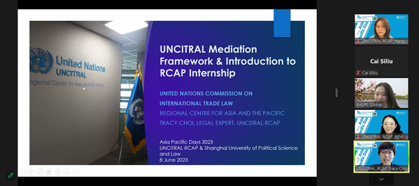 6月8日,我校2023年春季学期“海外讲坛”在线讲座第十讲举办。本次讲座作为联合国国际贸易法委员会(UNCITRAL)2023年“亚太日”活动,以“联合国国际贸易法委员会仲裁和调解框架”为主题,主讲嘉宾为联合国国际贸易法委员会(UNCITRAL)亚洲及太平洋区域中心主任Athita Komindr、法律专家Hangyeol Kim和法律专家Tracy Choi。讲座由国际交流处学生项目专员刘灵主持。