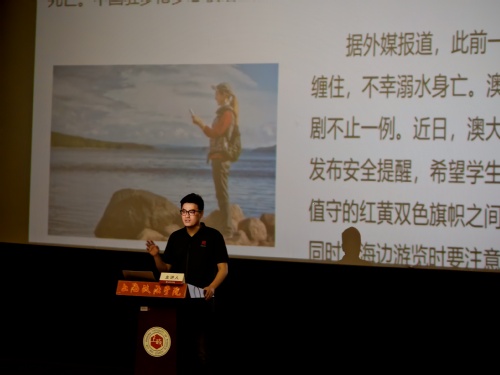 随后,张雨正为我校学生带来领事保护安全培训讲座,从留学生境外人身安全出发,通过对典型的留学生人身伤害事件、境外遇险新闻、常见毒品犯罪等真实案例的分析,向现场的同学们详细讲解了境外个人安全保护的相关知识,并针对各类突发情况做出相应的应对措施。