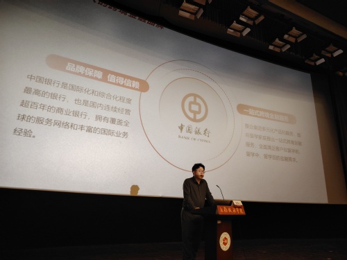 张嘉晔主讲金融知识及留学准备讲座,向同学们科普了留学期间的金融安全、金融便利方面知识,提醒同学们重视跨境汇款安全,结合自身情况选择合适的金融服务,使同学们能够更好地做好留学金融准备。