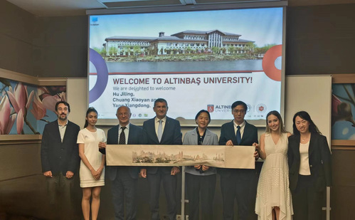 在土耳其阿尔庭巴斯大学,该校校长Çağrı ERHAN教授,法律学院院长Mehmet Kamil YILDIRIM教授,校友与国际化部高级专家Betül ESEN,对外关系专员Zehra Zülal AHMEDİ热情接待了我校代表团一行。