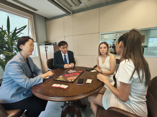 座谈会上,胡继灵介绍了我校的基本情况、办学特色、留学生培养情况;杨向东介绍了学校法律人才培养方向、特色,以及依托中国-上合司法培训基地开展“一带一路”涉外法治、安全等领域的研究情况。