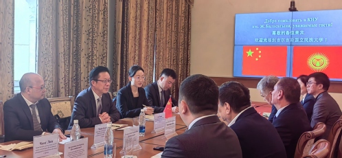 在吉尔吉斯斯坦国立民族大学,校长托克托萨尔托维奇,法学院院长斯曼纳利耶夫、国际合作关系处主任科尔迪别科夫、吉-中学院院长阿拉耶娃、孔子学院院长陈志国、上合组织法律大学联盟协调人布祖尔曼库洛夫等会见了我校代表团一行。托克托萨尔托维奇介绍了该校的学科发展、人才培养、师资力量、国际合作等情况。他表示,上合组织法律大学联盟为法学领域的学术研究、教育教学提供了良好的平台,期待未来能在学术交流、科研项目、师生互换等方面开展全面合作。
