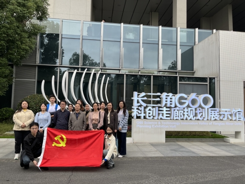长三角G60科创走廊以上海松江为策源地,包括嘉兴、杭州、金华、苏州、湖州、宣城、芜湖等9个城市,覆盖面积约7.62万平方公里,是中国经济最具活力、城镇化水平最高的区域之一。支部党员们通过观看宣传片,对G60科创走廊的整体规划布局和发展战略定位有了全面的认识。在讲解员引导下,师生党员一行观摩了馆内陈列,体验了从大飞机模拟舱到宇航服纳米材料等一系列具有国际先进水平的高科技产品,真切感受到了当前“中国制造”迈向“中国创造”的科技实力。