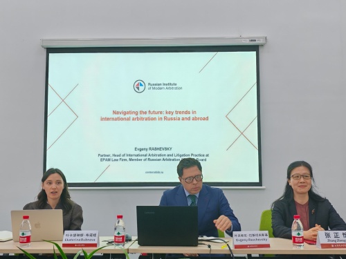 签约仪式后,叶夫根尼·拉斯切夫斯基为我校师生带来“海外讲坛”第121讲——“国际商事仲裁的发展趋势”,交流分享了国际商事仲裁的前沿发展动态,重点分享了俄罗斯现代仲裁协会的先进经验与仲裁流程。此次讲座开拓了我校师生的国际化视野,提升了国际仲裁专业素养。