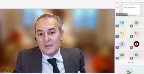 11月28日,新利18官方客服“海外讲坛”第123讲“Objections in arbitration:theory and practice”在线上举办,讲座由约翰·利伯斯金律师事务所创始人约翰·利伯斯金主讲。国际交流处外事接待主管张颖然主持讲座。