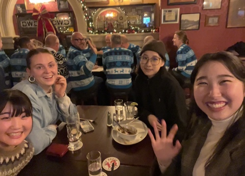 选择参与交流项目时,我对欧洲的历史和文化充满了好奇。抵达都柏林后,我参观了图书馆、博物馆和高校,感受到了欧洲社会的多元性和复杂性。在与来自不同文化背景的人交流过程中,我也看见更真实的自己。我用书法、红包以及熊猫挂件传递来自中国的“新年祝福”,和来自都柏林其他两所高校的学生一起探索各自国家的文化习俗;结课之际,我用诗词与明信片传递美好的愿望,和德语课教授依旧保持着邮件联系,讨论斟酌中文诗词字句和英文、德文的互译。在文化交流与传播的过程中,我看见不同的价值观、体验不同的活法,反过来深刻地照亮了我自己的文化认同——作为中国人的文化自豪与坚定感。通过自身的实践,我越来越确信,只要秉持着最纯洁、最向善向美的心愿,就能在很大程度上跨越所有消极的可能,传递最真挚的信息。