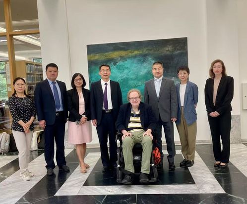 在德国法兰克福大学法律与金融学院,代表团与行政院长Dr. Rolf Friedewald博士、国际合作部主任Shen Dee Kobbelt进行工作会谈。高志刚回顾了两校合作历程,强调此次访问对推动双方建立全方位、多层次合作关系的重要作用,并就师生交流、科研合作等提出具体设想。Dr. Rolf Friedewald院长充分肯定双方合作成果,表示将进一步加强双方的交流合作,共同提升国际化办学水平。代表团还实地考察了该校教学科研等设施,全面了解中国学生在德国的学习和生活环境。