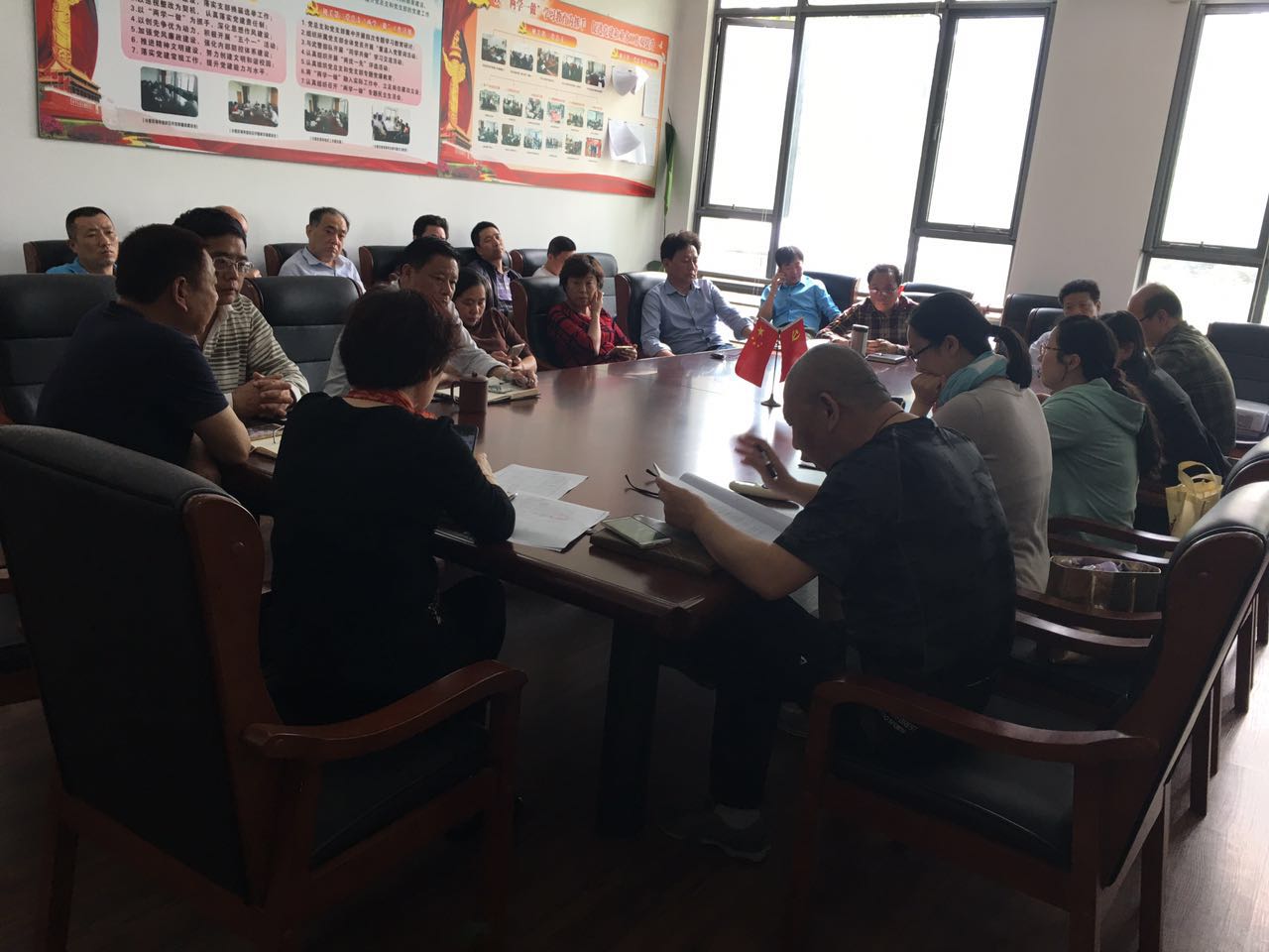4月18日下午校后勤保障处于行政楼117会议室组织召开在职人员会议,全体在职人员参加会议。