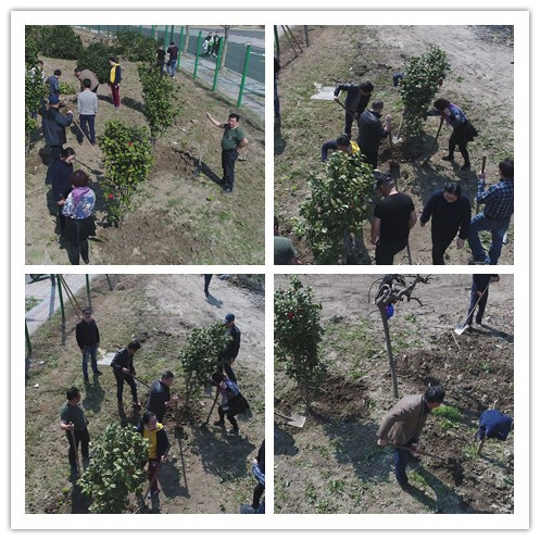 活动中,大家根据技术要求,分工明确,热火朝天地干了起来,挖坑、栽苗、挥锹、培土,鞋上沾满了厚厚的泥巴,脸上挂满了大大的汗珠,使出浑身的劲。经过大家的努力,一颗颗小树全部载好了。