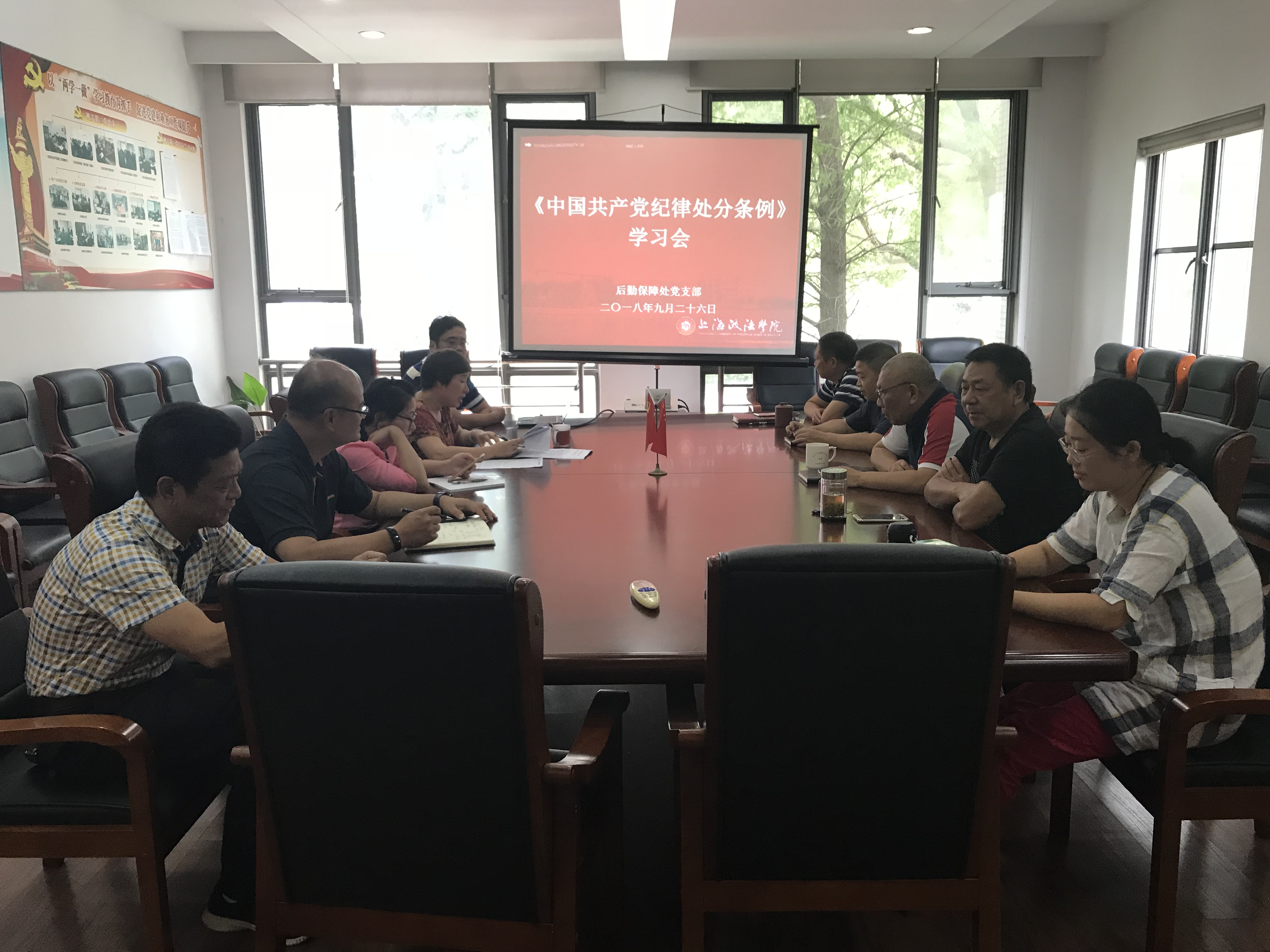 9月26日下午,后勤保障处党支部在行政楼117会议室组织开展党风廉政教育——《中国共产党纪律处分条例》学习会。支部10名党员参加本次活动。