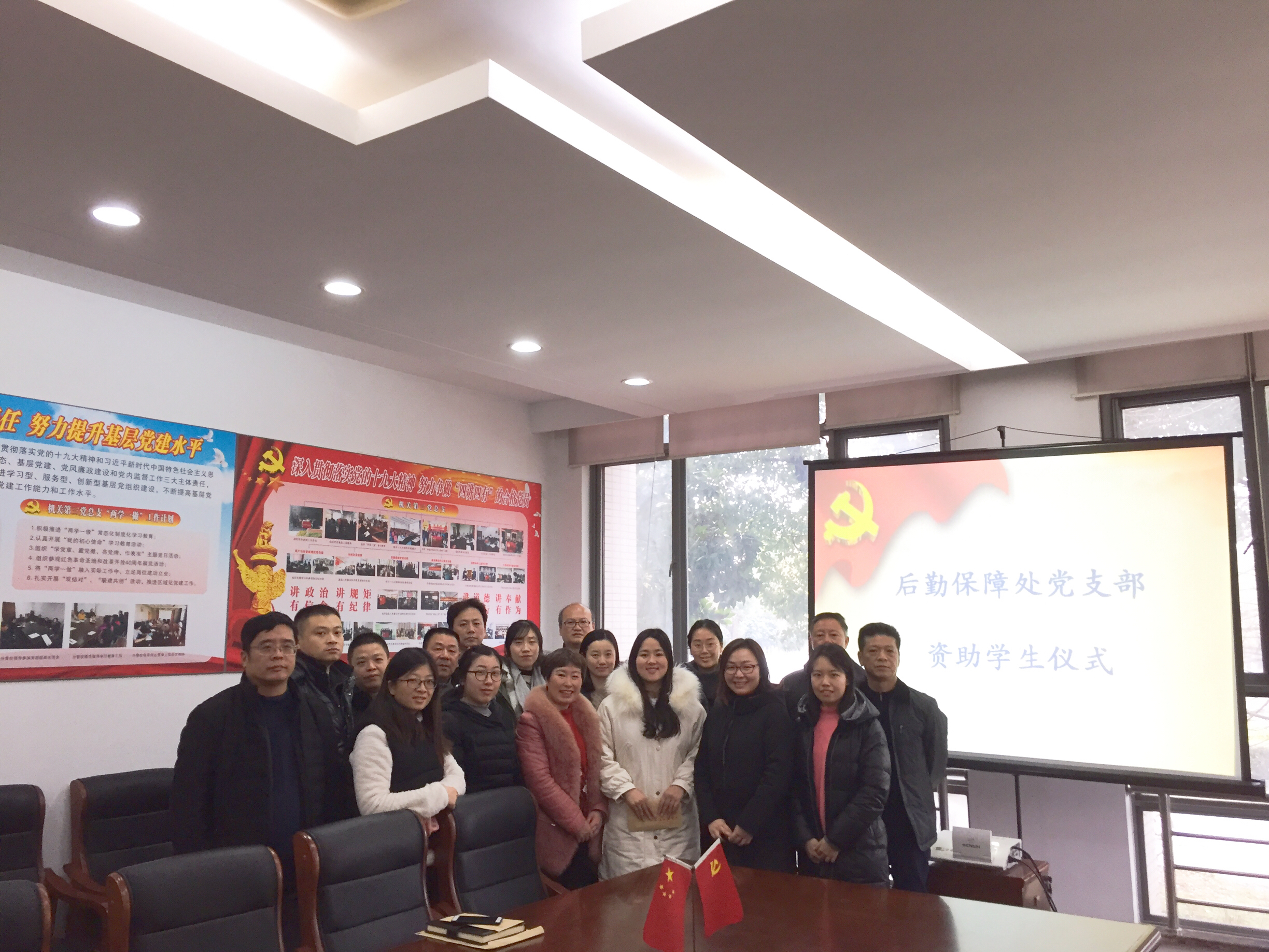 1月8日(星期二)下午 ,后勤保障处党支部与国务学院学生党支部结对共建暨学生资助仪式在行政楼117会议室举行。后勤保障处党支部全体党员、国务学院学工团队共同参与了共建仪式。