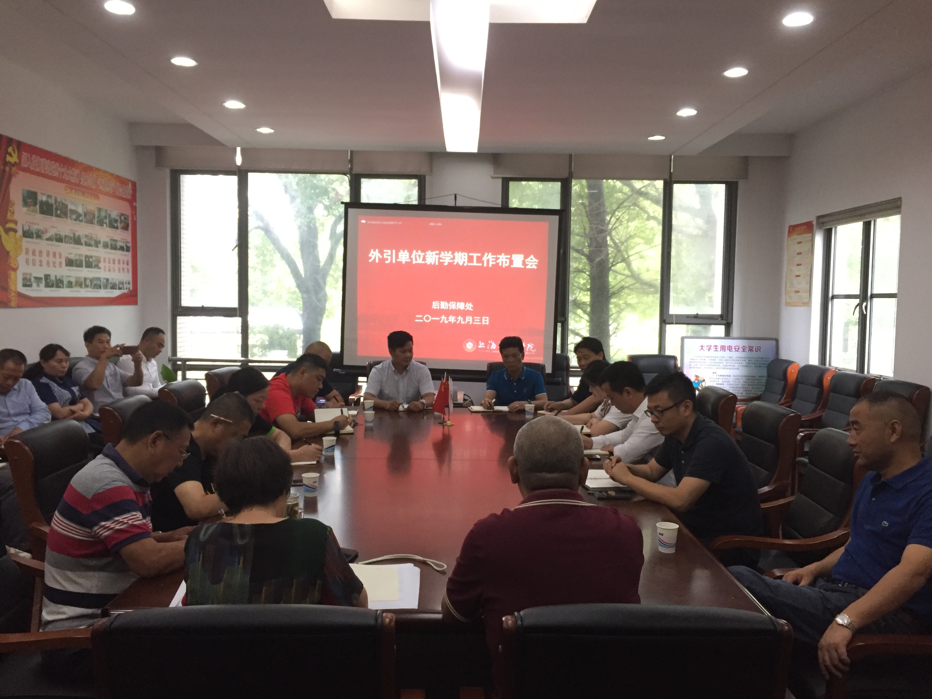 为确保新学期学校后勤保障工作安全有序进行,9月3日上午,后勤保障处在求实楼117会议室召开学校外引单位新学期工作布置会,对外引单位新学期的服务保障工作进行安排和部署。会议由祝耀明主持,综合服务科管理人员及学校各外引单位负责人参加了会议。