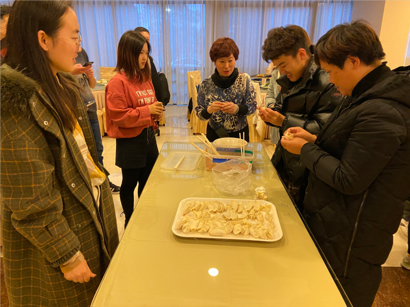 联谊会上,大家摩拳擦掌,兴致高昂。在老师的带领下,纷纷动手包起了饺子,通过相互合作、互相指点,一个个形状各异、玲珑剔透的饺子诞生了。随后在食堂阿姨的帮助下,包好的饺子下了锅,不久热腾腾的饺子上了桌,大家品尝着自己的劳动成果,不由自主的流露出了发自内心的喜悦。同时,也切身感受到食堂师傅日常工作的辛劳。