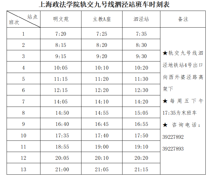 特别提示:如需咨询具体乘车信息,请联系交通科:39227892;39227893