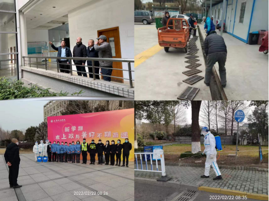 后勤保障处领导高度重视新学期开学工作,在2月7日与物业公司负责人就相关开学准备工作进行了谋划,结合校园实际就开展校园环境大整治工作进行了研究,明确了工作阶段划分、工作任务分工及具体工作措施;物业绿化部从2月11日开始就分区分片对校园外围绿化带进行集中的整理和修剪,对各办公、教学、生活楼宇周围的绿化场地进行全面的清理清扫,对行政楼、食堂周边花坛进行了花卉种植美化;物业保洁部、工程部从2月17日开始全面恢复上班,对校园外围道路、排水管道、供水管线路、所有楼宇、水电气设施、各类服务保障设备、教学、办公、宿舍等公共场所进行了全面的清扫清理、消毒通风、维修维护;后勤保障处各科室从2月21日全面恢复正常工作,召开部门和外引单位开学工作部署会,进一步强化了校园秩序恢复、环境卫生整治、设施设备调试、服务保障运行等工作,并于2月22日组织开展了疫情防控演练。