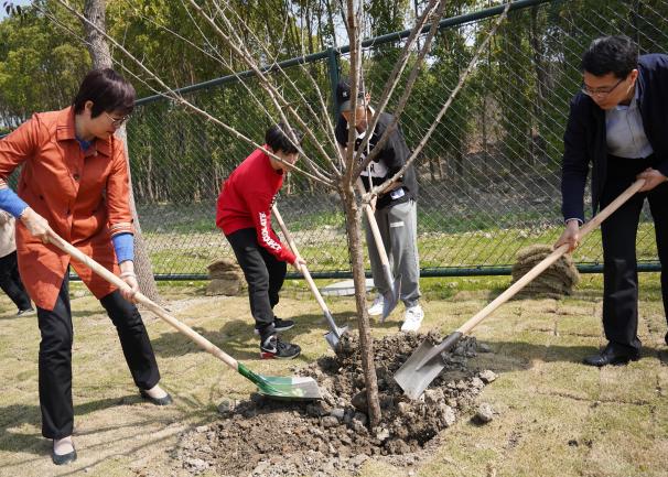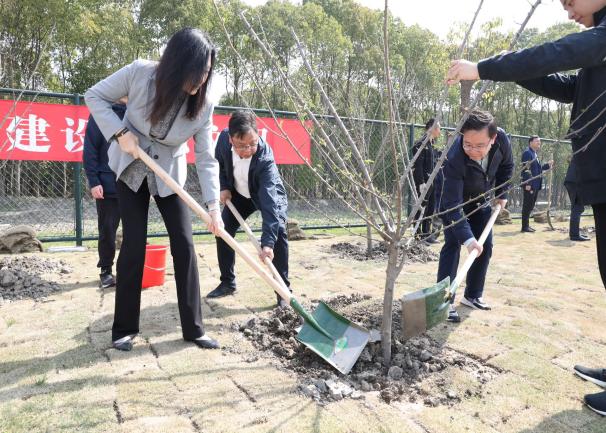 阳春三月风正暖,恰是植树好时节。为深入践行习近平生态文明思想,牢固树立“绿水青山就是金山银山”的生态文明理念,加强学校生态文明教育,积极参与植树造林和生态保护,在第45个植树节来临之际,3月12日上午,校党委书记夏小和,校党委副书记、校长刘晓红,校党委副书记、纪委书记潘牧天,校党委副书记刘刚,副校长胡继灵、郑少华等校领导与相关职能部门负责人来到学校新学活运动场东侧草坪,与师生代表一起参加义务植树活动。