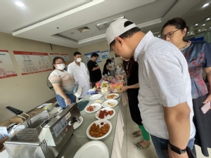 活动前,后勤保障处精心策划,组织学校食堂经营服务单位认真筹备,对美食活动产品严格审核把关,力求活动产品品种丰富、质优价廉,同时做好产品采购溯源及储运监管工作,切实保障食品安全。活动期间,学校教职工纷至沓来,对展出的熟食卤菜及预制菜精挑细选,现场气氛热烈。后勤保障处处长潘高荣、副处长张顺芳和食堂监管小组为教职工免费发放粽子,让辛苦工作的教职工感受端午佳节的浓厚氛围,彰显后勤服务建设的真情与温度。