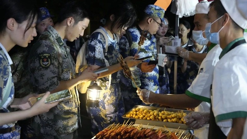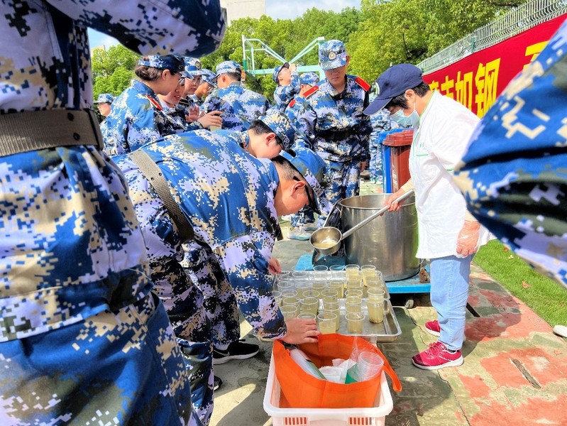 务求实干实效,真情回馈师生。后勤保障处根据军训人数及训练场地方位,为参训教官师生供应各类清热润肺饮品,在学校组织学生军训团拉练时搭起摊位,以质优价廉的美食慰问、回馈凯旋归来的师生,彰显后勤保障的温情与担当。