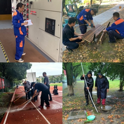 后勤保障处利用暑假期间对后勤领域重要场所及公共区域各类设施设备、管道线路进行细致检查和维修,扎实落实防汛防台各项措施,防范安全风险;开展食品安全专项检查督查,加强餐厅全流程管理,强化落实食品安全主体责任;开展校园环境卫生整治、精细绿化养护,对校园道路、广场、树林、各楼宇内外公共区域等重点区域开展大保洁,进行河道治理及湖面杂物清理,对校园行道树、绿植、灌木、草丛进行修剪、整理、美化,落实生态文明校园建设的措施,展现校园新气象新风貌;聚焦师生关切,根据时间节点及早谋划启动新学期重点工作,推进学生公寓大型维修、各类零星维修、新快递服务中心建设、餐饮服务及外引单位服务保障、医疗保障、交通保障等工作,畅通师生监督沟通渠道,为学校迎新及开学做好后勤保障服务工作。