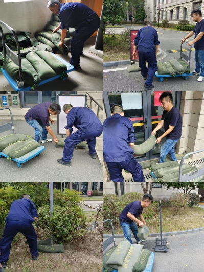 台风登陆期间,后勤保障处、学生工作部、保卫处等部门协同配合迅速行动,携手共抗台风,奋战在校园的各个角落,昼夜接力、坚守岗位,24小时值班值守,第一时间关注师生动态,第一时间解决实际困难,全力守护校园平安;组织物业保洁、保安、社区工作人员强化巡查,随时掌握通报校园安全情况,认真做好校园安全防范提示,及时做好各类学生信息摸排、安全宣教等工作;根据实际需要调配防汛沙袋、雨衣、雨靴、排水泵等防汛物资;组织各餐厅保质保量做好餐饮服务,切实做好师生员工饮食保障。
