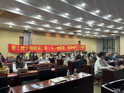 林长坡科长在讲座一开始,就用生动有趣的动画视频讲述了登革热的流行与定义,伊蚊是主要的传播媒介,接着讲述了登革热的症状危害与预防措施,患者有发热、皮疹、眼痛肌肉痛等表现,生活中要注意环境卫生,定期清理垃圾、消除积水,减少蚊虫滋生地;在户外活动时,要做好防护,穿长衣长裤、涂抹驱蚊剂等。最后设置了有奖竞答环节,同学们通过回答问题,更加牢固地掌握了预防知识。