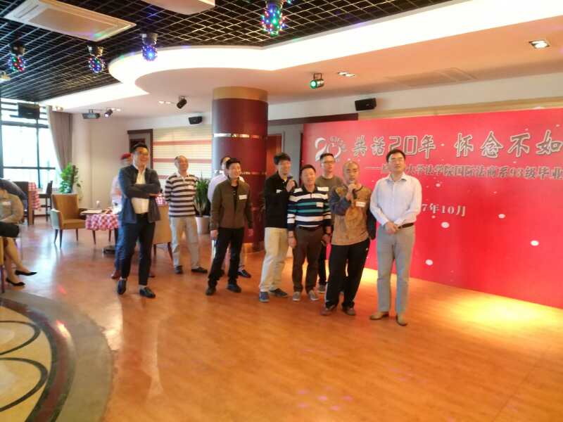 在我校第33个建校纪念日即将到来之际,上海大学国际法商系1997届毕业生齐齐回到野马浜参加毕业20周年值年庆活动。凌顺根、吴益民、沈国勤等曾先后在原国际法商系工作过的老师出席了纪念活动;国际法学院党总支书记朱和平向各位校友介绍了近年来学校发生的巨大变化与中远期规划;不能来到现场的谢根华、王丽华等老师通过视频与校友交流互动。现场洋溢着温馨怀旧、青春奋斗的热烈气氛。