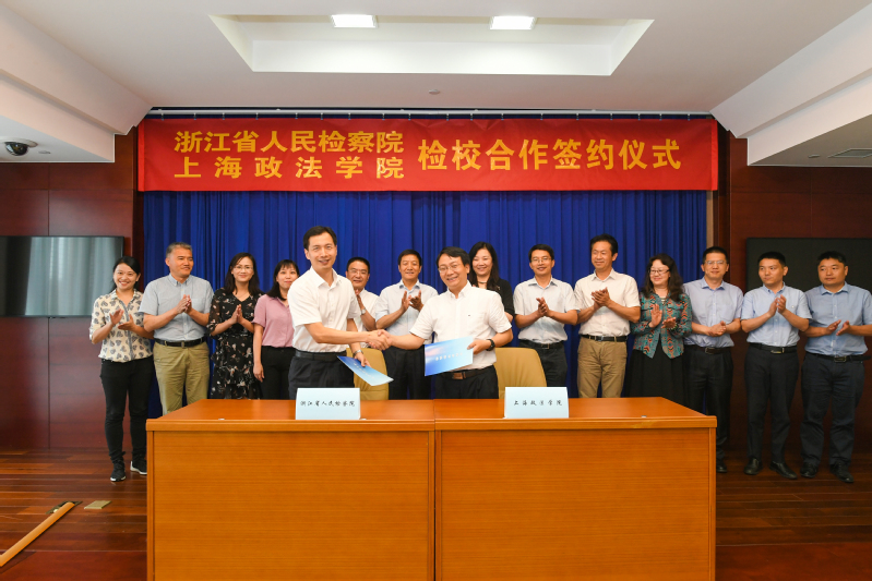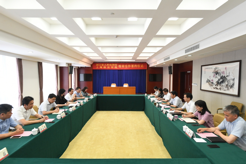 浙江省人民检察院党组书记、检察长贾宇,院党组成员、政治部主任胡梅奎,我校党委常委、副校长姚建龙出席签约仪式。胡梅奎主持仪式并与姚建龙在双方共同见证下签约共建。