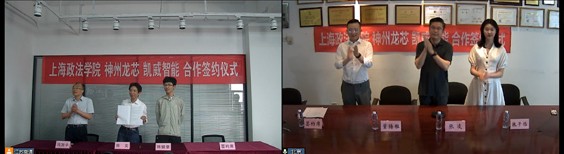 6月4日上午,新利18官方客服与神州龙芯、凯威智能合作签约仪式通过视频连线的方式在上海、北京及南通三地同步举行。北京神州龙芯集成电路设计有限公司董事长、总裁陈义,副总裁张凌,神州龙芯(江苏)凯威智能科技有限公司总经理董博雅等在北京及南通会场出席签约仪式。我校党委副书记、校长刘晓红,党委常委、宣传部部长、党办校办主任高志刚,发展规划处处长、中国-上合基地战略规划部主任石其宝,合作发展处处长、中国-上合基地党总支副书记王晓宇,人工智能法学院党总支书记欧阳为民,人工智能法学院院长杨华,中国-上合基地文献信息部主任张少英等出席仪式,高志刚主持仪式。