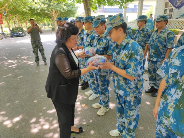 会谈后,王晓宇一行来到营地训练场,慰问了正在营地支援上海市雏鹰计划夏令营的我校志愿者。王晓宇、姜玉卿等为大家送上清凉用品,叮嘱同学们注意防暑降温与疫情防护,展现上政风采、砥砺学子初心。同学们感谢学校的问候,表示将再接再厉、不辱使命。