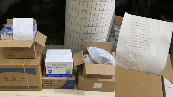 在募捐活动发起人周佳辉和柴文龙校友的大力支持与积极帮助下,多名校友的积极响应,募捐活动取得圆满成功。捐赠物资主要包括:消毒液、隔离口罩、隔离面罩、隔离服等。