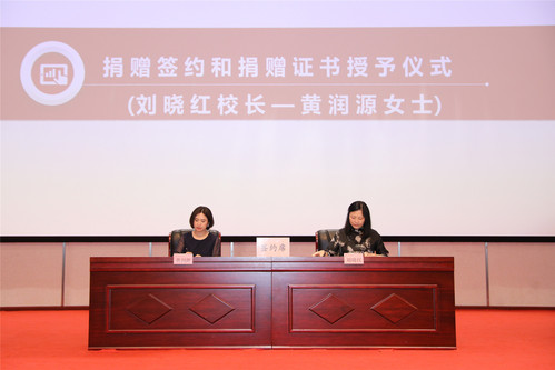 刘晓红感谢黄润源女士的大爱善举。她指出,黄润源女士无私奉献,多年来持续支持教育事业,扶持优秀学子。今天,黄润源女士决定向我校教育发展基金会无偿捐赠400万元,设立专项基金,全力支持我校学科科研发展。这是今年6月我校教育发展基金会正式获批后收到的第一笔捐赠,也是我校办学以来所接受的单笔最高金额的善款。刘晓红强调,近年来,学校不断适应社会发展形势,持续探索符合上政实际和社会需求的人才培养机制、办学治校模式。先后成立了校友会、校务委员会、教育发展基金会,并鼓励二级学院设立理事会,积极搭建平台吸纳广大校友、行业企业和社会各界人士参与办学治校。今天,黄润源女士与上政签约,既是我校合作交流的新成果,也是我校开放办学的新起点。相信在黄润源女士等爱心人士的鼎力相助和社会各界的大力支持下,学校必将凝聚提升内涵、加快发展的强大动力,推进学校高质量发展迈上新台阶。