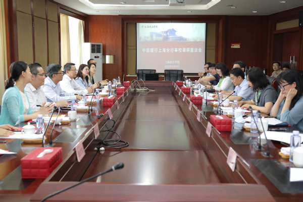 6月9日上午,中国银行上海分行资深客户经理杨军、行政事业机构部总经理李哲、人力资源部副总经理蔡晶、行政事业机构部副总经理朱环、示范区分行行长朱华栋等一行来校调研座谈。校党委书记葛卫华,校党委常委、副校长胡继灵出席座谈交流会。座谈会由胡继灵主持。