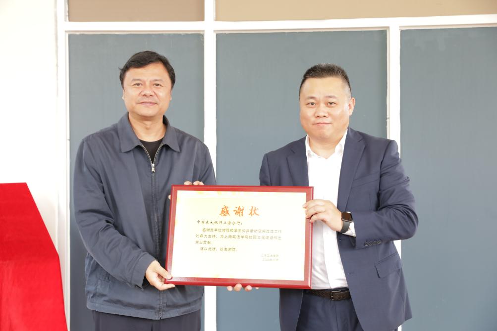 为进一步满足师生对校内休闲学习场所的需求,在光大银行上海分行市西支行的支持下,10月25日上午,“青春上政·光大亲水广场”正式建成启用,上政校园又多了一处休闲文化的新地标。校党委副书记、校长刘晓红,光大银行上海分行党委委员、副行长杜奕,校党委副书记刘刚等出席揭牌仪式。