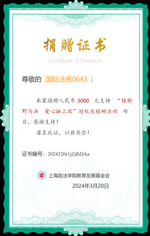 自国际法学院校友向全体上政人发出树木认捐的倡议以来,各界人士高度关注、积极参与,爱校荣校的氛围日渐浓厚,校园内处处洋溢着感恩与奋进的气氛。近日,学校板球队全体队员们也行动起来,为上政认捐了一棵“青春之树”。