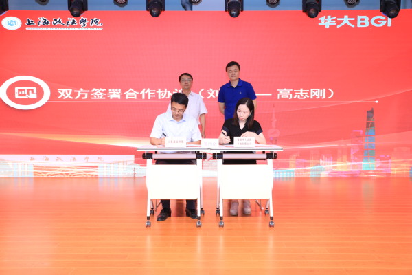 华大鉴正、华大集团猛犸教育,我校党办校办、学工部、计财处、教务处、中国—上合司法培训基地办、合作发展处以及警务学院相关负责人与师生代表参加此次签约活动。
