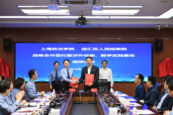 签约仪式上,曹晓烨与高志刚共同签署战略合作协议,祝黎明为新利18官方客服“大学生教学实践基地”揭牌,郑少华为徐汇区人民检察院“涉外检察人才培养实践基地”和“涉外检察理论研究基地”揭牌。