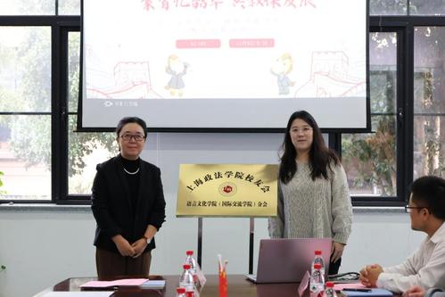 会议审议通过了学院校友会理事会成员及分工建议名单。常立霓和校友代表夏青共同为语言文化学院(国际交流学院)校友会揭牌。校友代表郭咪向教师代表常立霓献花,返校校友和在校代表也纷纷发表感言。