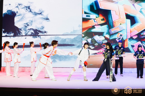 学校还特别为上政学子准备了晚场节目,《醉春风》以灵动的舞姿,展现激扬青春活力;昆曲《南柯记·瑶台【梁州第七】》以悠扬的唱腔,尽显传统文化魅力。上政学子以深情话语诉说学校光辉历程,以青年之姿庆贺学校四十华诞,现场欢呼声与喝彩声交织,观众们用手中的五彩灯牌交相照亮了这个意义非凡的夜晚。