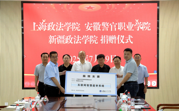 7月29日下午,沪皖兵三地政法院校合作发展座谈会暨教学系统捐赠仪式在新疆政法学院举行。郑少华一行与新疆政法学院党委书记、校长陈旭东,安徽警官职业学院党委副书记、院长操申斌及中检天帷集团代表等齐聚一堂,围绕法学教育创新、实践基地共建、智慧校园建设等开展深度交流。