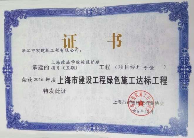近日,经上海市建筑施工行业协会评选,我校扩建五期项目被评为“市建设工程绿色施工达标工程”。