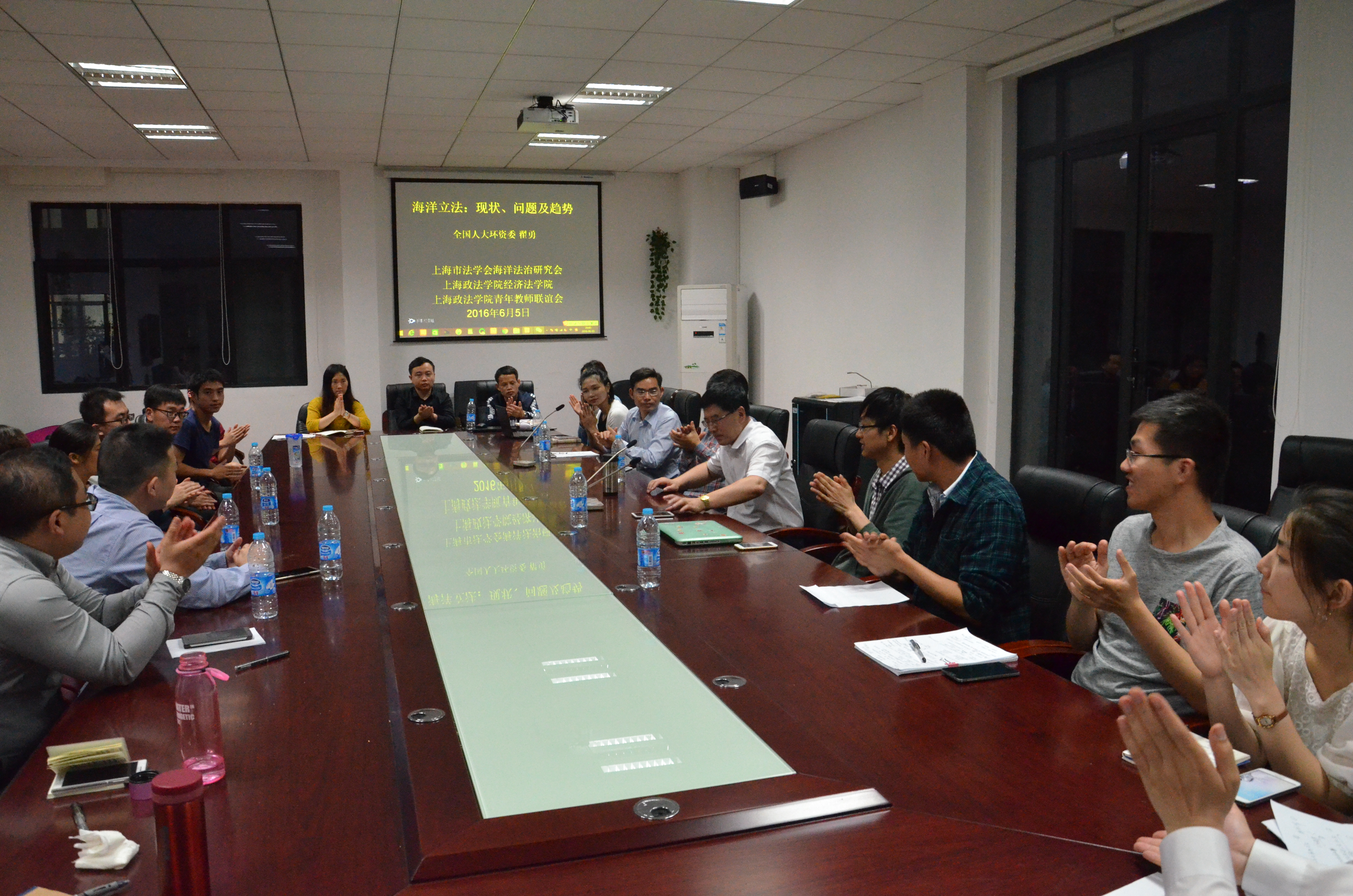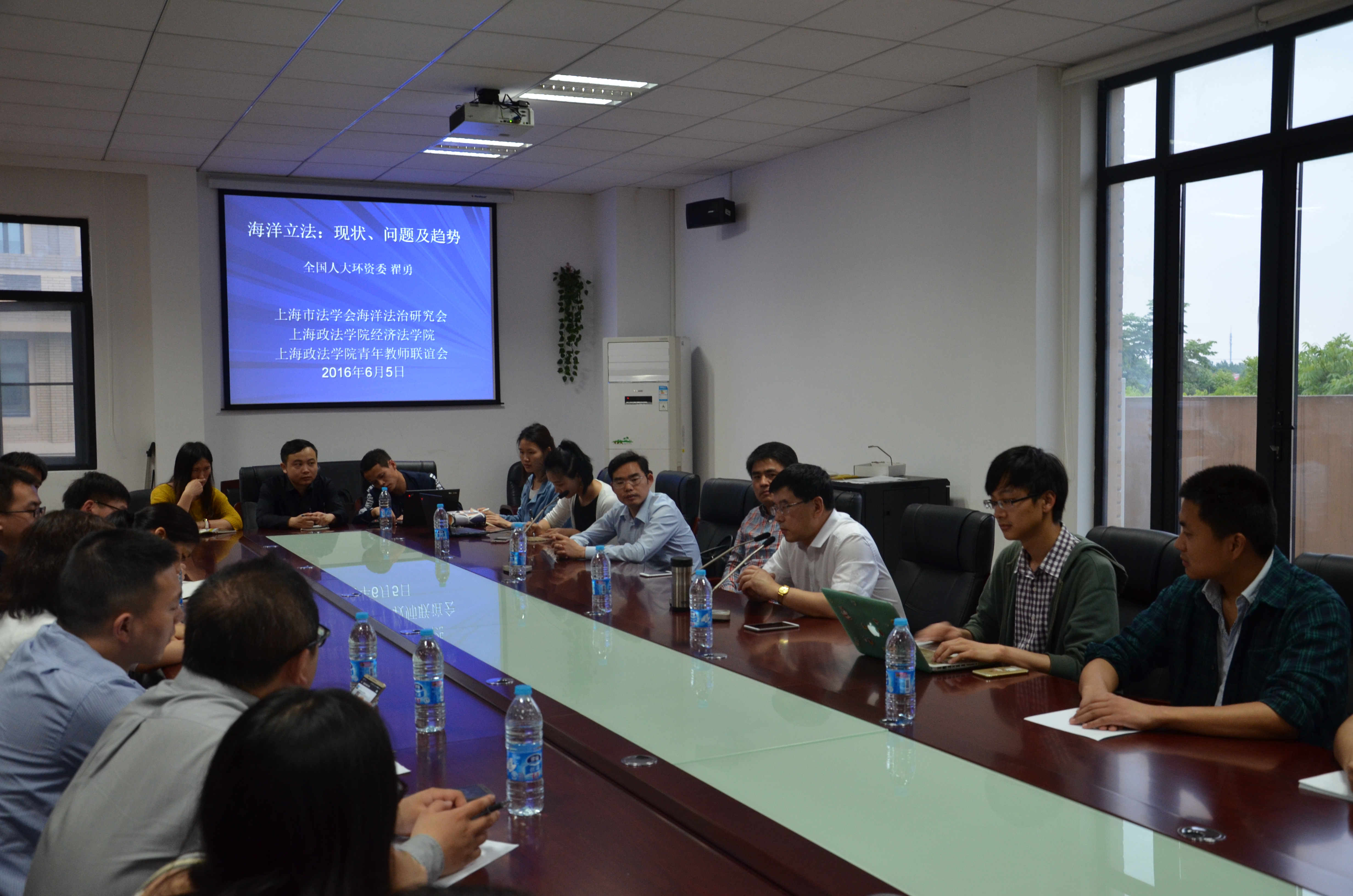 2016年6月5日,法学楼B1-201,经济法学院荣幸邀请到了全国人大环资委法案室主任翟勇先生来我校做海洋立法、环境立法相关工作座谈会。座谈会由上海市法学会海洋法治研究会、新利18官方客服经济法学院、新利18官方客服青年教师联谊会共同举办。虽值周末,本座谈会吸引了复旦大学、华东师范大学及我校的多位青年教师、博士、硕士研究生前来参加。