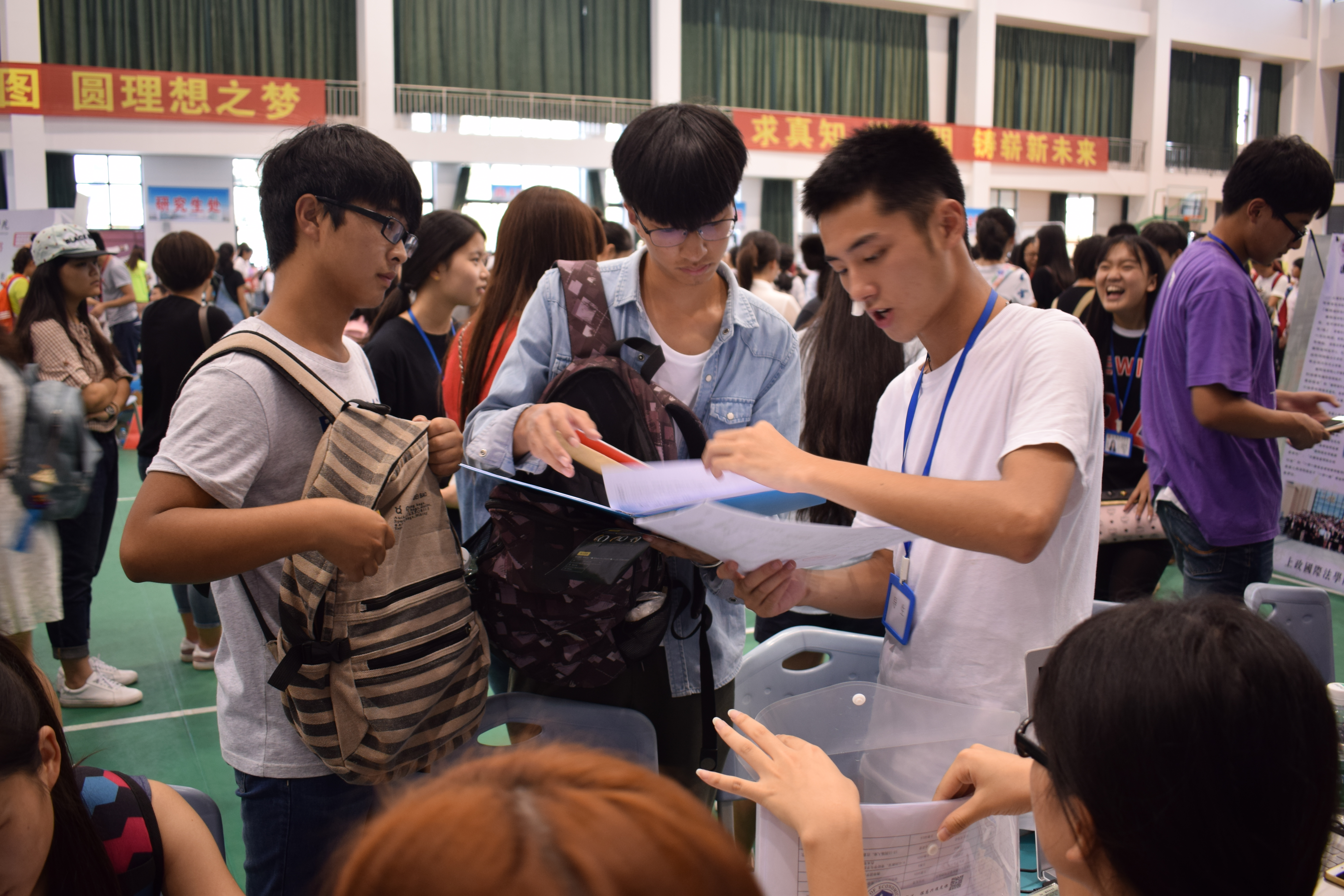 导生们的热情与细心体现在每一个举止当中。其中,来自经济法1543班的沈扬明同学担任经济法1641班的导生,在迎新首天突然流鼻血但仍然坚持在迎新现场,经过简单的处理后不动声息地继续为新生讲解入学流程。其实,沈扬明同学在迎新前一天搬运新生手册的途中也突然流鼻血但仍然坚持完成了搬运。经济法学院的迎新工作得到了校领导的亲切关心。迎新工作组也在学院领导和各位辅导员、团学干部的努力下为新生提供了热诚周到的服务,在接下来的日子里,我们将继续以这份热诚的心为新生们提供帮助!(撰稿/李侍锰 摄影/周敏)