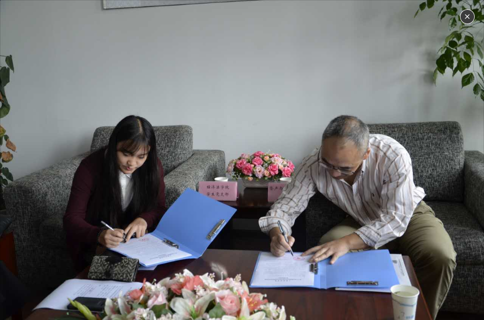 结对仪式在一片和谐融洽的氛围中拉开帷幕。主持人傅瑾老师简短的介绍了与会教师和同学之后,由经济法学院行政党支部书记张慧老师简要介绍了我院学生党支部的基本情况以及我院学生党员的先锋带头作用。随后,资产与设备管理处党支部书记彭辉老师也向在座的教师、同学们介绍了资产与设备管理处党支部的基本情况,简单提及了本次两个支部对结帮扶的工作计划,表示在今后的党建工作中希望可以根据双方支部特点,在组织建设、党员素质培训等方面进行合作与交流。紧接着,双方代表即资产与设备管理处党支部书记彭辉老师和经济法学院学生党支部书记常露曦同学共同签署结对共建协议书。