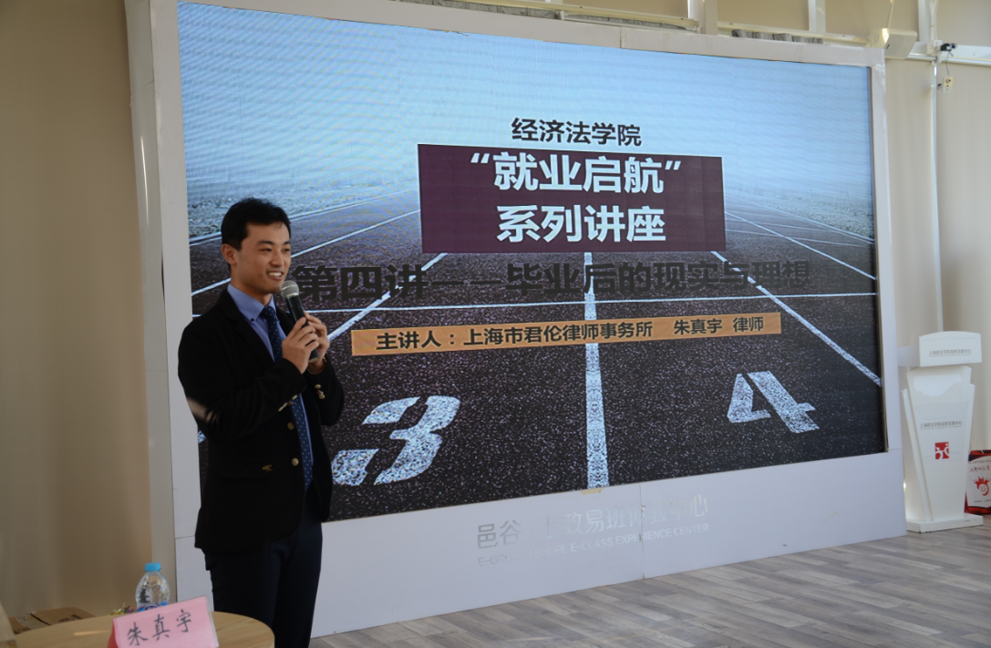 11月3日下午1点,经济法学院在邑谷·上政易班线下体验中心举办了“就业启航”第四讲——“毕业后的现实与理想”。担任本次讲座的主讲人朱真宇律师是从我院毕业的优秀校友,现就职于上海君伦律师事务所。他结合自身丰富的经历,分享了他对于法学生步入社会的理解。